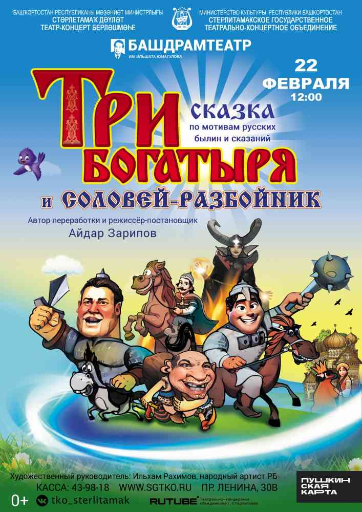 Кто такой Соловей и такой ли он разбойник? У артистов башкирского драматического театра им.Ильшата Юмагулова появилась своя версия! В спектакле "Три богатыря и Соловей-разбойник" оппонент компании сказочных героев – не враг, а всего лишь добродушный мальчик, играющий на народном музыкальном инструменте, и он не мешает, а наоборот – помогает друзьям в их веселых приключениях.